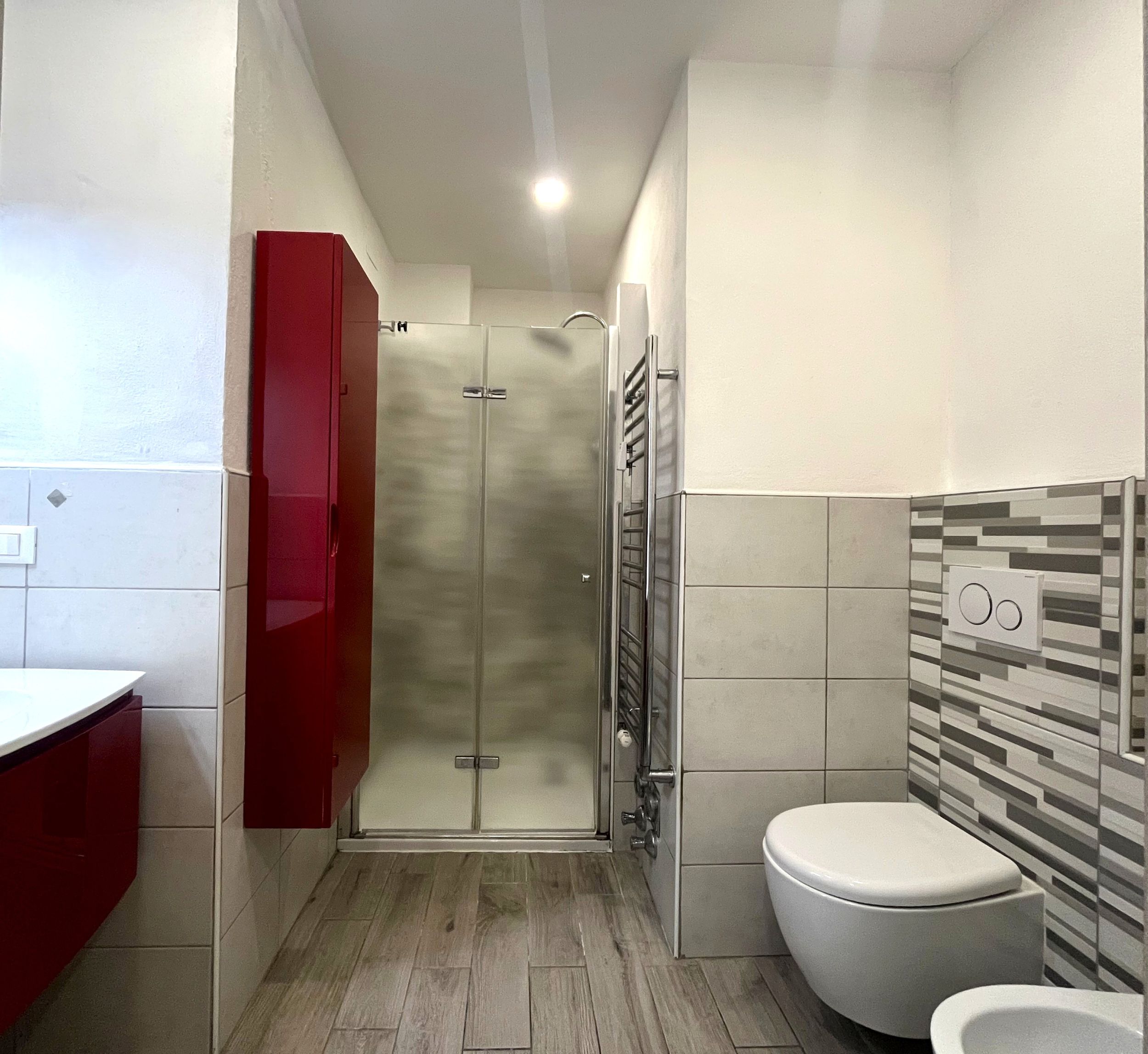 La ristrutturazione ha unito due unità abitative, creando un grande appartamento moderno, funzionale e perfettamente organizzato, mantenendo però la predisposizione degli impianti per un’eventuale futura divisione. Una caratteristica preziosa per chi desidera flessibilità nel tempo.